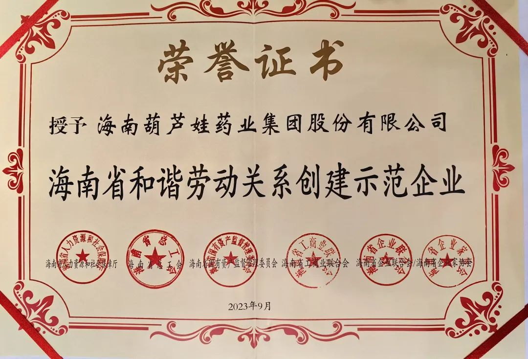 Z6尊龙凯时药业集团获评“海南省和谐劳动关系创建示范企业”